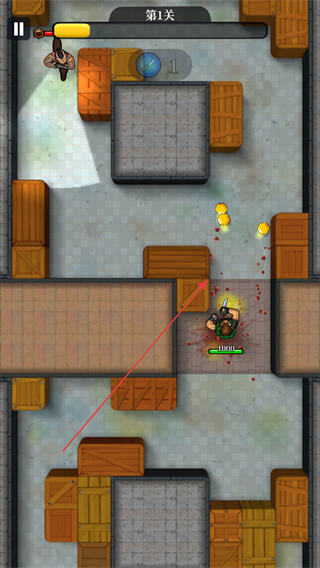 3、擊敗敵人后收集金幣,同時(shí)利用場(chǎng)景中的木箱躲避或走位。