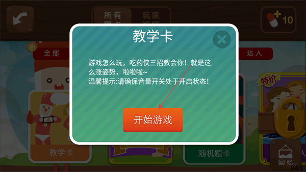 2、彈出教學(xué)卡點擊開始游戲按鈕,進入游戲教學(xué)場景。