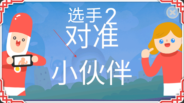 3、在游戲教學(xué)場景中,按照提示讓選手2對準(zhǔn)小伙伴。