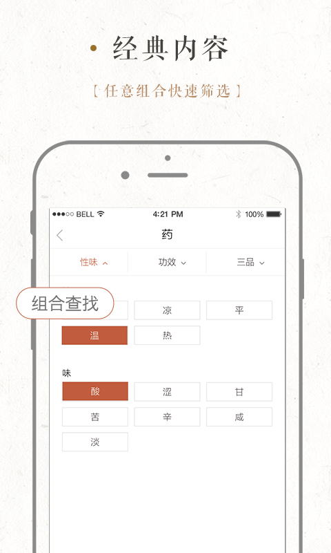 4.一鍵直達(dá),一種“橫看”經(jīng)典的全新方式:查看藥方的時(shí)候快速瀏覽各味藥的性味經(jīng)方反向索引,直達(dá)經(jīng)典醫(yī)書的相關(guān)條文。如,“《傷寒論》中所有出現(xiàn)桂枝湯的條文”所有詞條、生僻字自動(dòng)鏈接,相關(guān)內(nèi)容一鍵