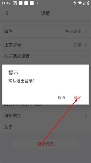 3、在設(shè)置頁面點(diǎn)擊底部的退出登錄,彈出確認(rèn)提示框。