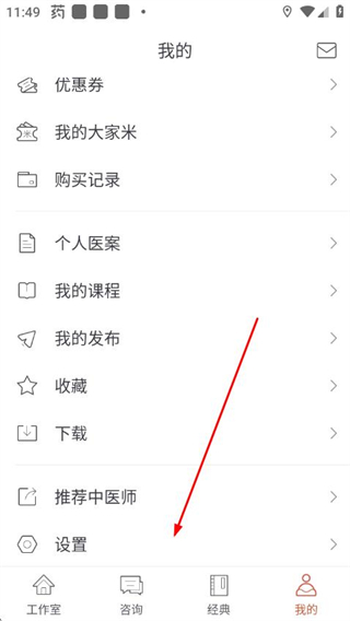 1、打開大家中醫(yī)App的工作室頁面,點(diǎn)擊底部的我的,進(jìn)入個(gè)人頁面。
