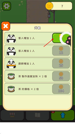 4、點擊升級界面中“客人增加1人”的綠色按鈕,花費金幣提升客人數(shù)量。