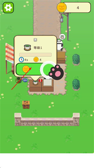 2、點擊茶制作界面中的金幣區(qū)域,收集制作茶獲得的4枚金幣。