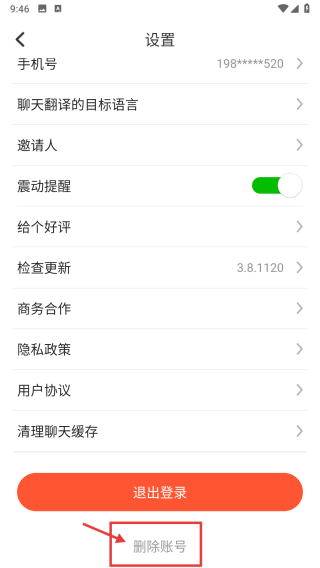 3、在設置頁面,點擊刪除賬號選項,進入申請注銷賬號頁面。