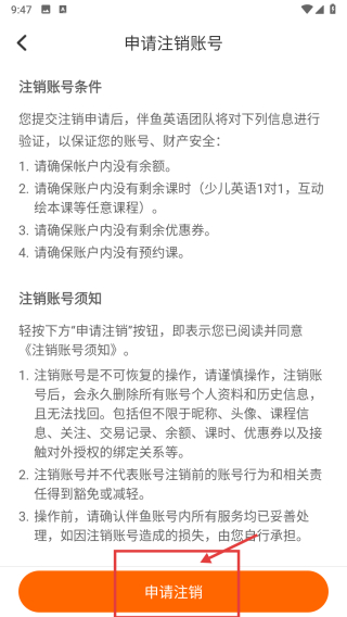 4、在申請注銷賬號頁面,點擊申請注銷按鈕,完成賬號注銷操作。
