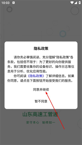 1、在隱私政策彈窗中,點擊同意,進入登錄頁面。