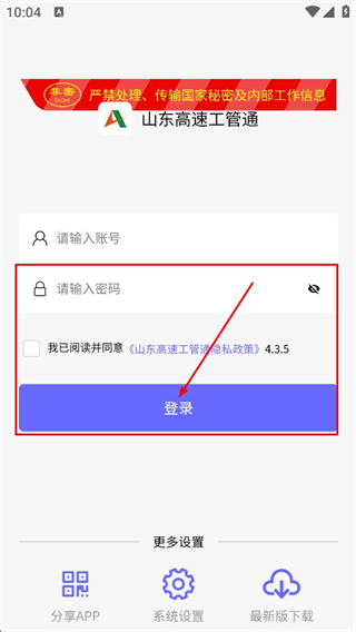 3、輸入密碼,勾選同意后點擊登錄,完成登錄操作。