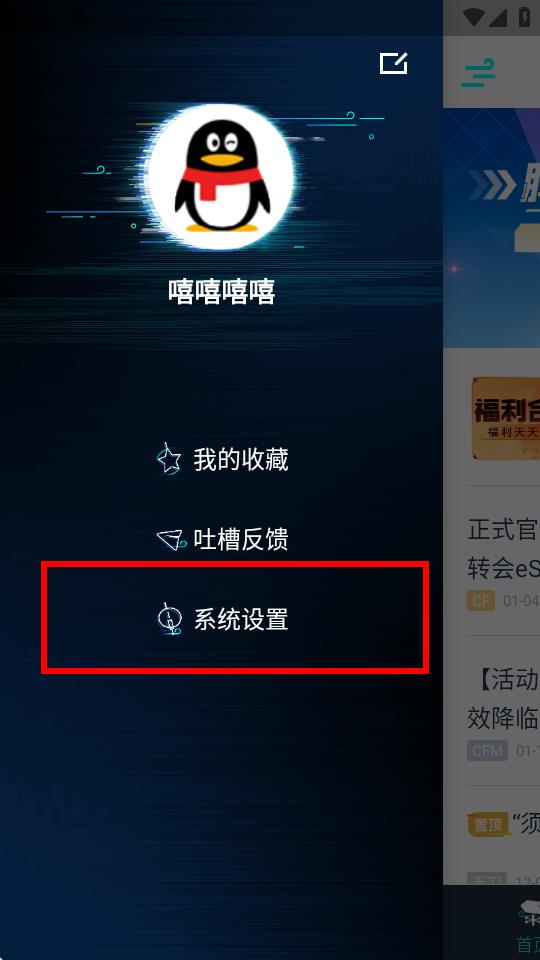 2、在彈出側邊欄中,找到并點擊系統設置選項。