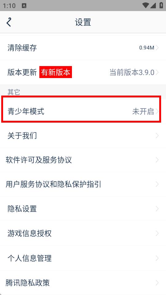 3、進入設置界面后,找到青少年模式選項并點擊進入。