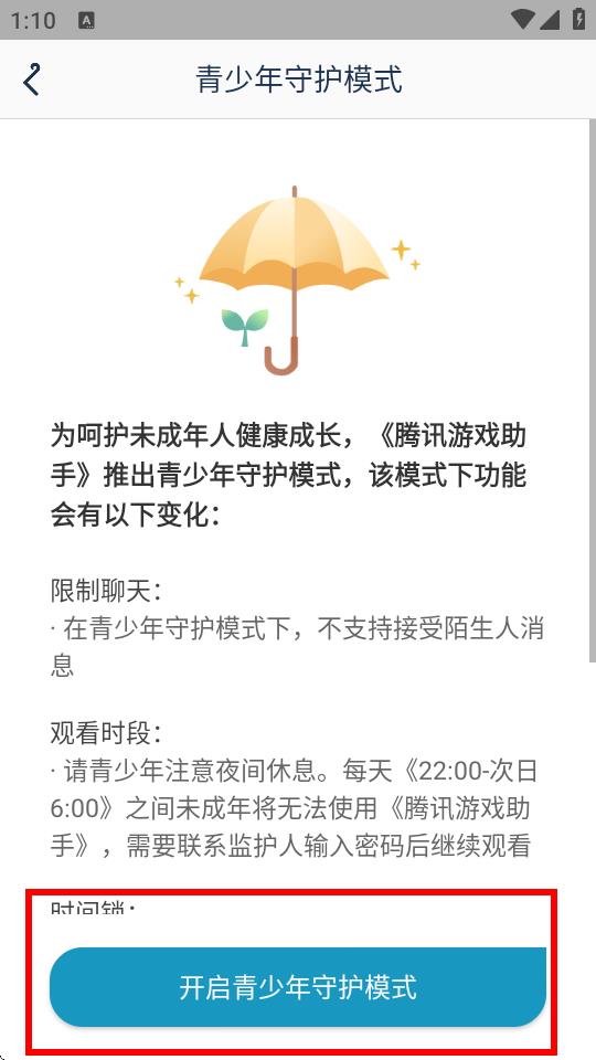 4、在青少年守護模式界面,點擊開啟青少年守護模式按鈕,按照提示完成操作即可開啟。