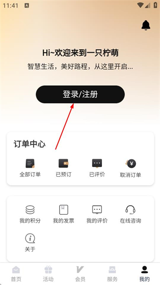 2、在個人中心頁面點擊登錄注冊按鈕,進入登錄界面。
