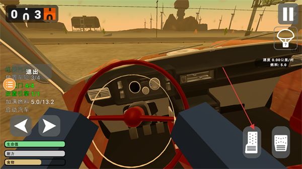4、安裝好汽車后,可以與駕駛位進(jìn)行交互,通過點(diǎn)擊右下角的油門可以出發(fā)前往長途之旅。