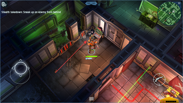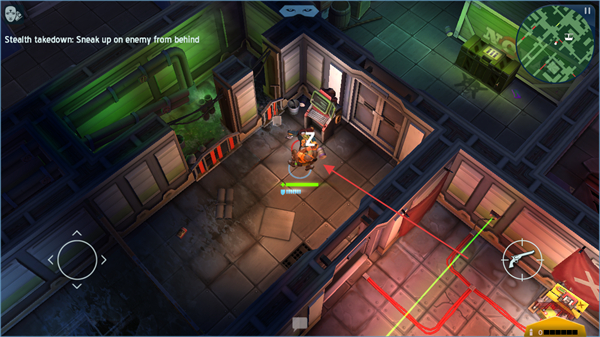 2、繞到敵人后方,發(fā)動潛行突襲Stealthtakedown,悄無聲息地消滅敵人。