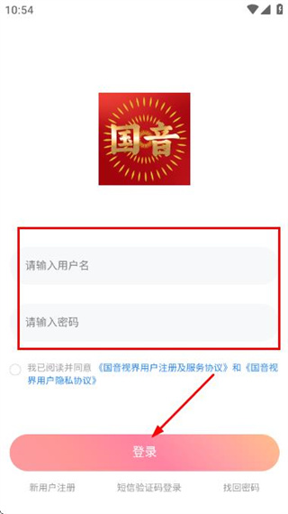 2、在個(gè)人頁(yè)面點(diǎn)擊頂部的登錄注冊(cè),進(jìn)入國(guó)音視界的登錄頁(yè)面。