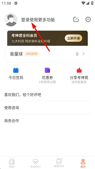 2、在個人頁面,點擊登錄使用更多功能區(qū)域,進入登錄頁面。