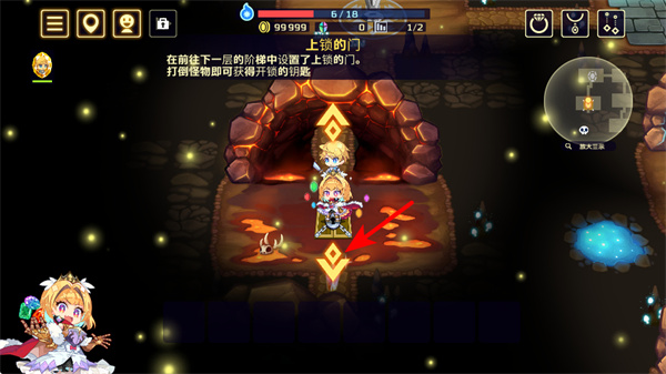 2、前往下一層階梯時(shí)遇到上鎖的門(mén),需打倒怪物獲取開(kāi)門(mén)鑰匙,按照此流程推進(jìn)能繼續(xù)探索下層區(qū)域。