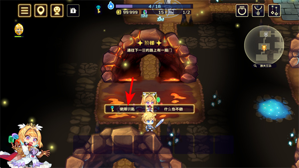 4、通過(guò)階梯前往下一層時(shí),可選擇使用鑰匙開(kāi)啟通道,這是重要操作,合理選擇才能推進(jìn)關(guān)卡進(jìn)程。