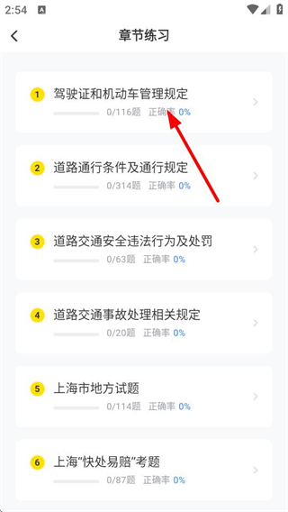 2、在章節(jié)練習(xí)列表頁面,選擇目標章節(jié),進入對應(yīng)題目頁面。