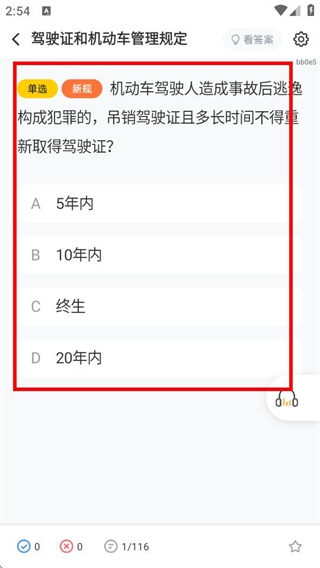 3、在題目頁面,即可開始作答該章節(jié)下的科目一題目。