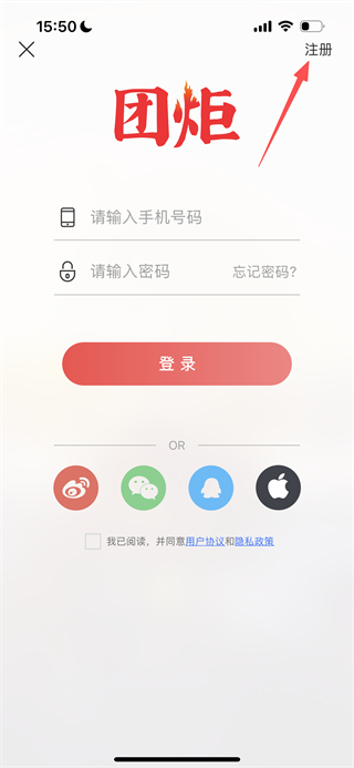 3、在登錄注冊頁面,點擊右上角的注冊選項,進入注冊頁面。