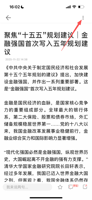 2、進(jìn)入新聞詳情頁(yè)后,點(diǎn)擊頁(yè)面右上角的三點(diǎn)圖標(biāo),可打開(kāi)操作菜單。