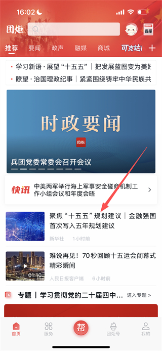 1、在團(tuán)炬的首頁(yè),找到感興趣的新聞條目,點(diǎn)擊即可進(jìn)入詳情頁(yè)。