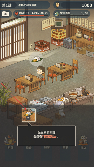 1、點擊左下角料理按鈕可制作料理,完成后會放置在料理擺放臺,為接待客人準(zhǔn)備餐食。