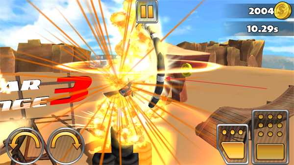 2、駕駛賽車穿越火圈等特技裝置,完成高難度動(dòng)作,觸發(fā)爆炸特效,獲取更多金幣。