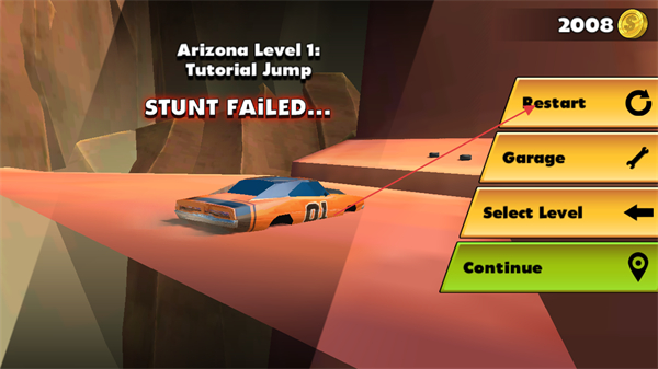 4、若特技失敗,可點(diǎn)擊Restart重新開(kāi)始挑戰(zhàn),不斷嘗試直到完成關(guān)卡特技任務(wù)。