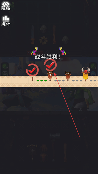 4、擊敗所有怪物后,獲得戰(zhàn)斗勝利,繼續(xù)挑戰(zhàn)下一個(gè)關(guān)卡,不斷收集物品裝滿背包。