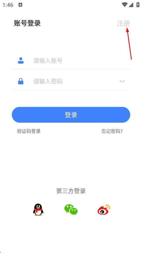 2、在賬號登錄頁面,點擊注冊,進入賬號注冊頁面。