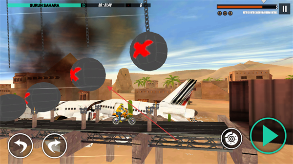 3、在賽道上躲避擺動的鐵球等障礙物,避免碰撞,確保摩托車行駛安全。