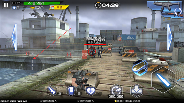 3、使用右下角的攻擊鍵,進行瞄準射擊,命中敵人頭部可以造成大量傷害,節(jié)省子彈消耗。