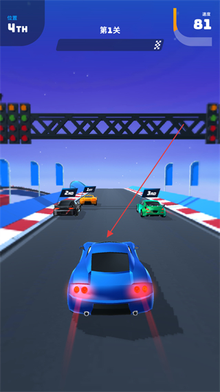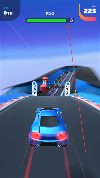 4、沖向終點前的坡道,保持高速行駛,爭取在關(guān)卡中獲得靠前的排名,完成挑戰(zhàn)。