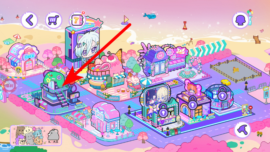 2、在游戲主場景,點擊游戲建筑區(qū)域,進(jìn)入游戲室內(nèi)場景。