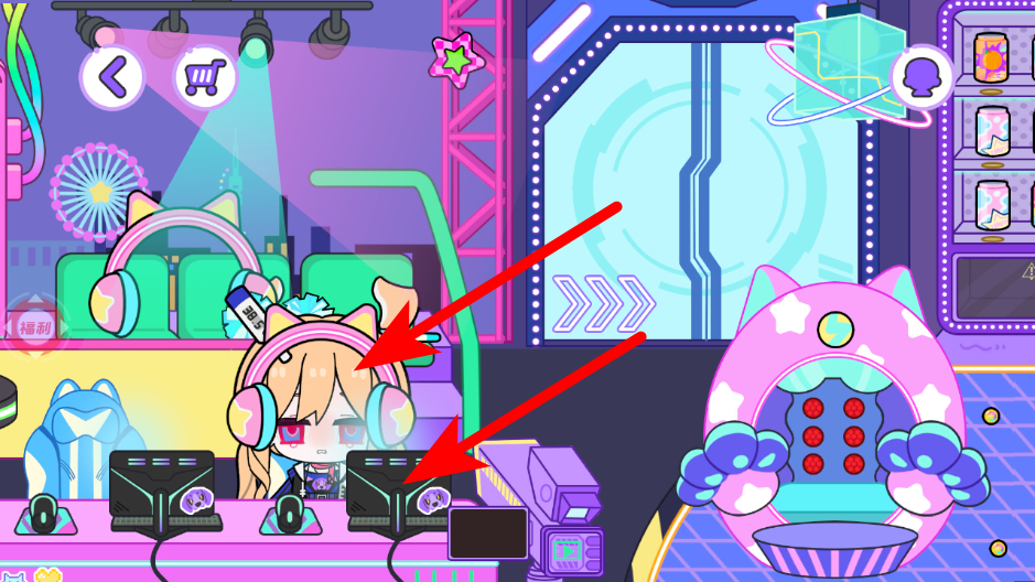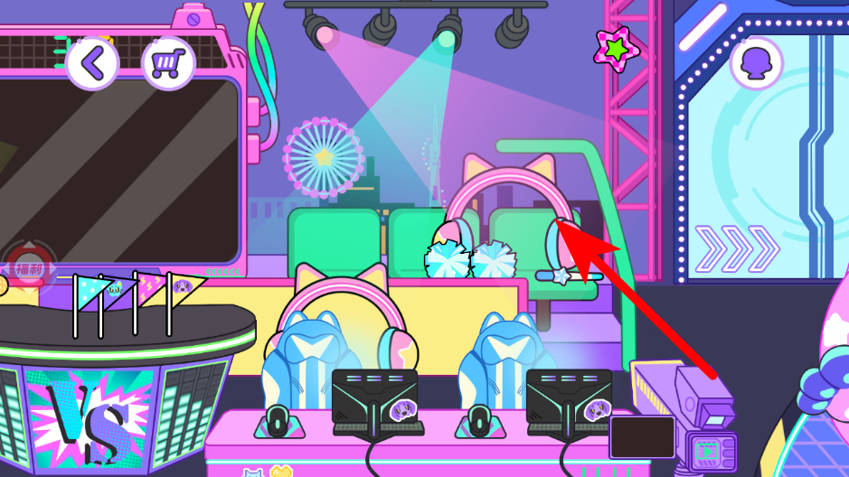 3、在游戲室內(nèi)場景,點擊耳機道具,為角色裝備耳機。