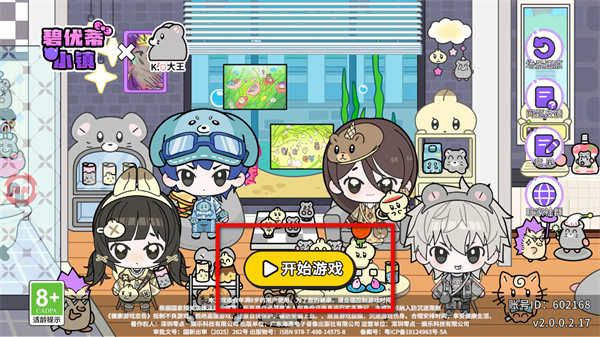 1、在碧優(yōu)蒂小鎮(zhèn)首頁,點擊開始游戲按鈕,進(jìn)入游戲主場景。