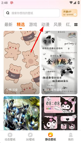 2、進(jìn)入靜態(tài)壁紙頁面后,點(diǎn)擊動漫分類標(biāo)簽,可查看動漫類靜態(tài)壁紙內(nèi)容。