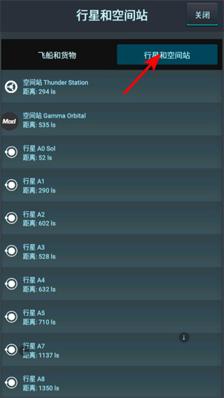 4、進(jìn)入行星和空間站界面后,選擇行星和空間站標(biāo)簽,可查看可前往的空間站和行星列表,從中選擇心儀目標(biāo)前往。