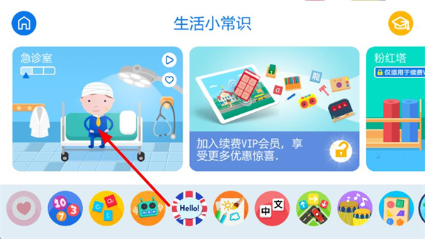 2、進(jìn)入生活小常識頁面后,點(diǎn)擊急診室對應(yīng)的內(nèi)容模塊,可進(jìn)入該模塊的互動(dòng)學(xué)習(xí)界面。