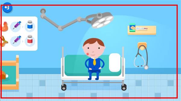 3、進(jìn)入急診室互動(dòng)界面后,即可使用道具給人物進(jìn)行治療并學(xué)習(xí)常識。