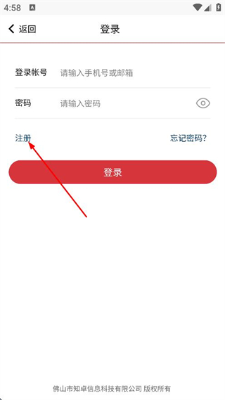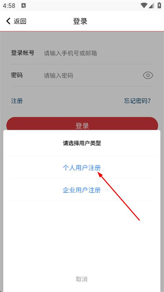 2、在登錄界面,點(diǎn)擊注冊,進(jìn)入用戶類型選擇頁面。