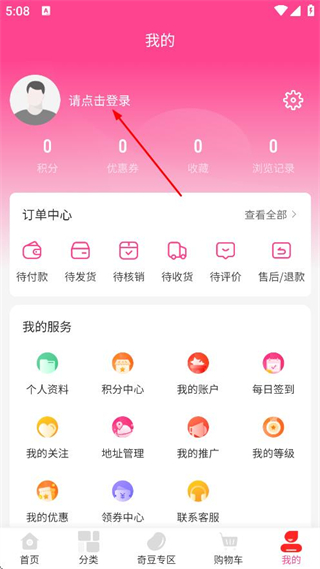 2、在個人中心頁面,點擊請點擊登錄,進入登錄界面。