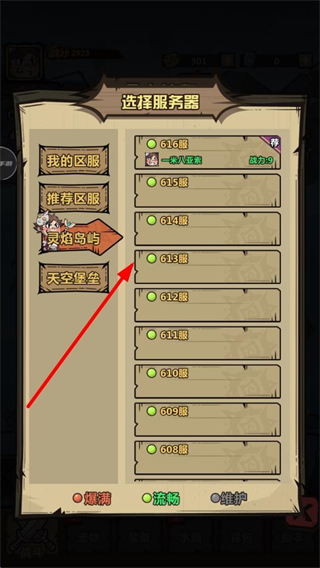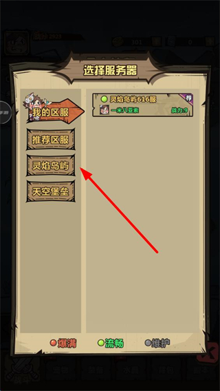 3、在選擇服務(wù)器界面中,選擇想要切換的服務(wù)器分類(lèi),如靈焰島嶼,