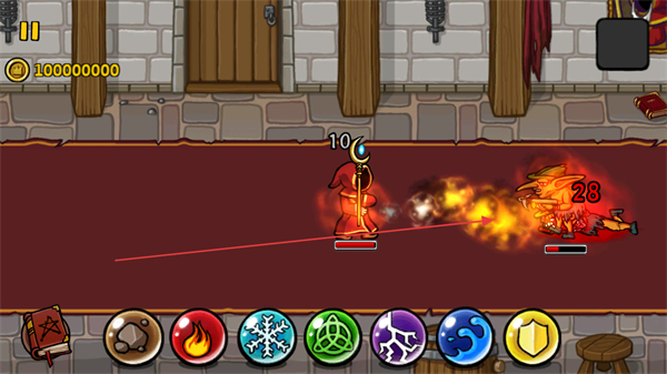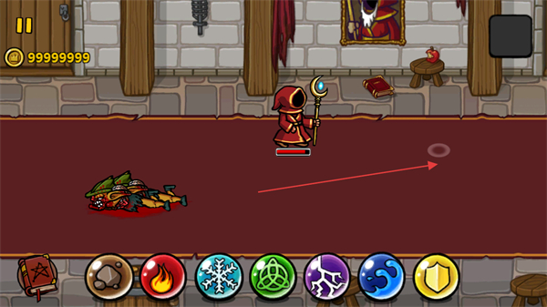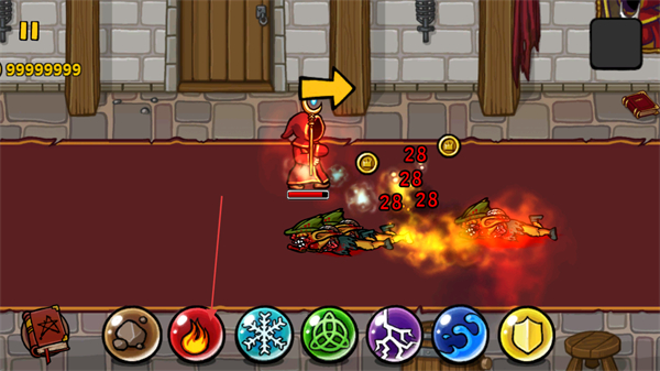 2、消滅敵人后收集金幣,積累資源,提升魔法能力。