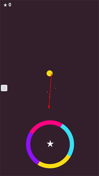 3、黃色小球下落時觀察圓環(huán)顏色分布,待小球到達對應(yīng)黃色區(qū)域時點擊屏幕,成功得分。