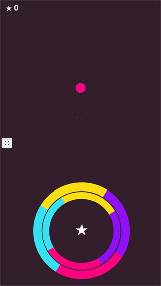 2、進入游戲后中心出現(xiàn)粉色小球,下方有彩色圓環(huán)含黃藍紫粉區(qū)域,等待小球下落點擊對應(yīng)顏色。