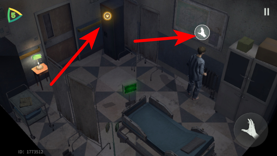 1、在病房場(chǎng)景,點(diǎn)擊右側(cè)互動(dòng)鍵,觸發(fā)區(qū)域內(nèi)的提示信息。