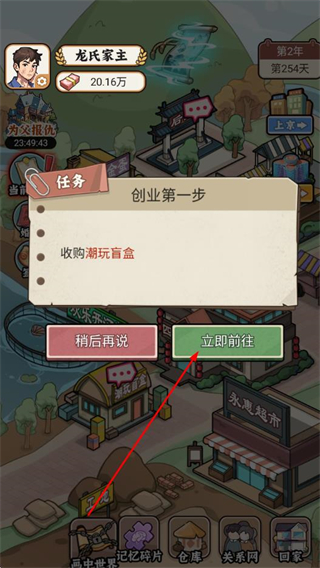 2、在彈出的任務(wù)窗口中點(diǎn)擊立即前往,快速獲取產(chǎn)業(yè),積累商業(yè)資源。